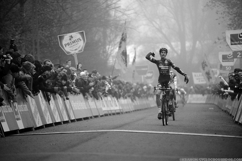 Twenty-year-old Van Aert led straight away closely tracked by Kevin Pauwels, Tom Meeusen; Lars van der Haar, Sven Nys and Klaas Vantornout. Van der Poel sat temporarily in ninth place before a big undertaking manoeuvre took him up to fifth.