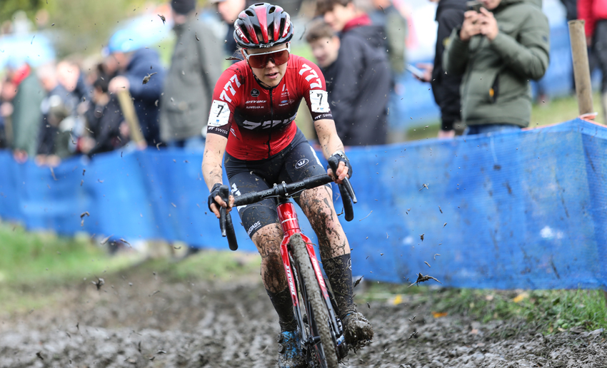 British riders continued to impress as the season really gets going in earnest. After best ever World Cup placings for Zoe Backstedt and Cameron Mason on Sunday, At the Koppenbergcross Anna Kay (below) captured third place with Cameron Mason fourth and Thomas Mein eighth in the men's race.