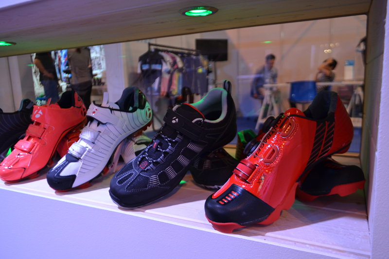 Bontrager brought their colourful shoe collection. The red XXX MTB (nearest) is the shoe used by Sven Nys. Bontrager: website.