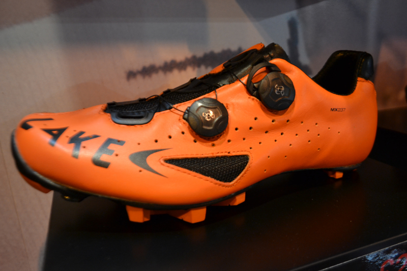 Lake were showing their full range of shoes including the 'on trend' orange MX237 and the more 'cross specific MX331 Cross which now comes in black as well as the original orange and available at 269 GBP. Lake: website.